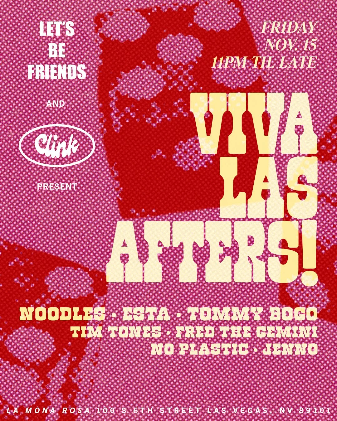 Created by Tim Tones and M Dot Coop, Let’s Be Friends is a weekly & monthly party series pushing the boundaries of culture through music and collectivism. This is an alt logo for their merch as well as flyers for their parties in Las Vegas.